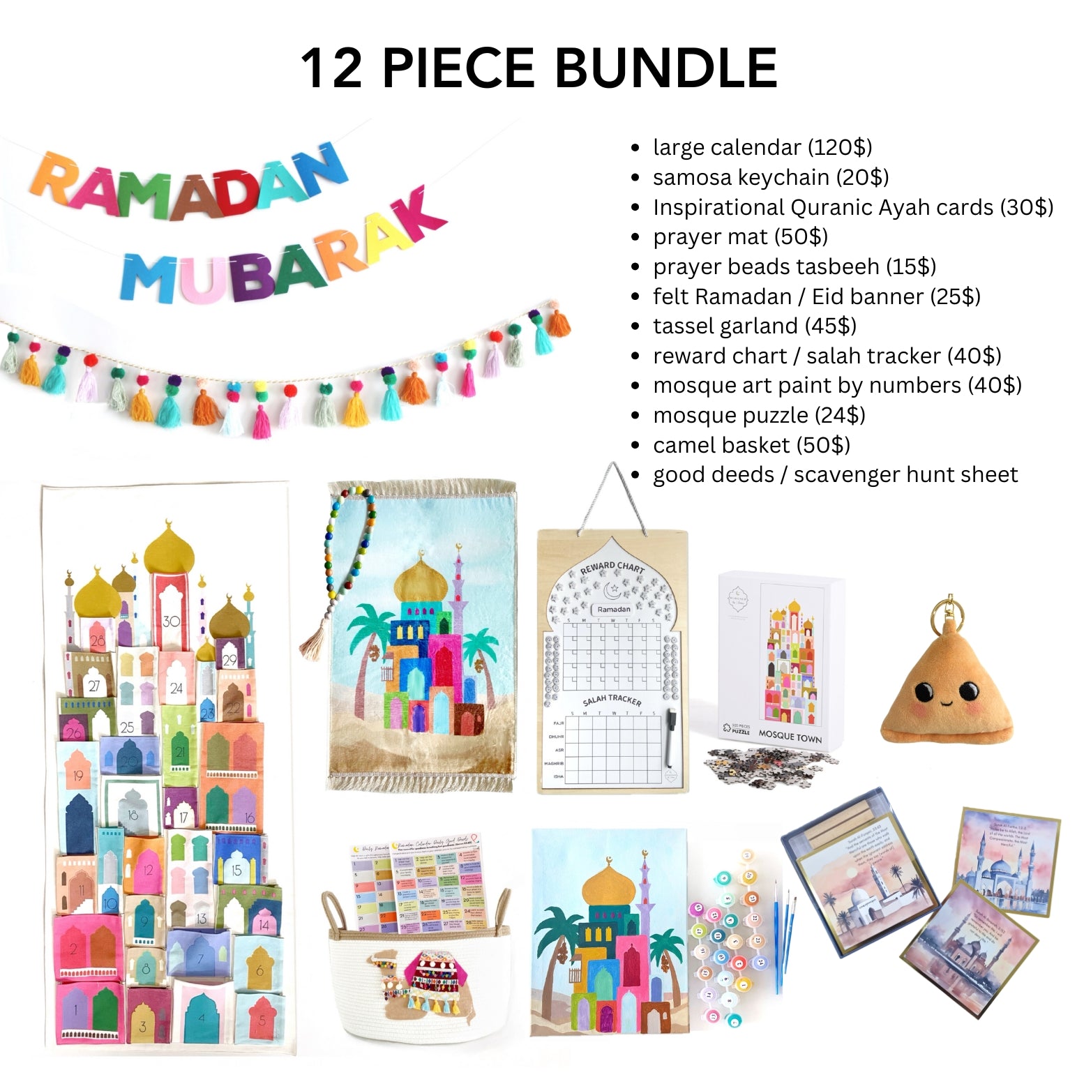 This bundle makes life easier! A one stop shop of Ramadan products you can reuse for many years iA! Valued at US $470