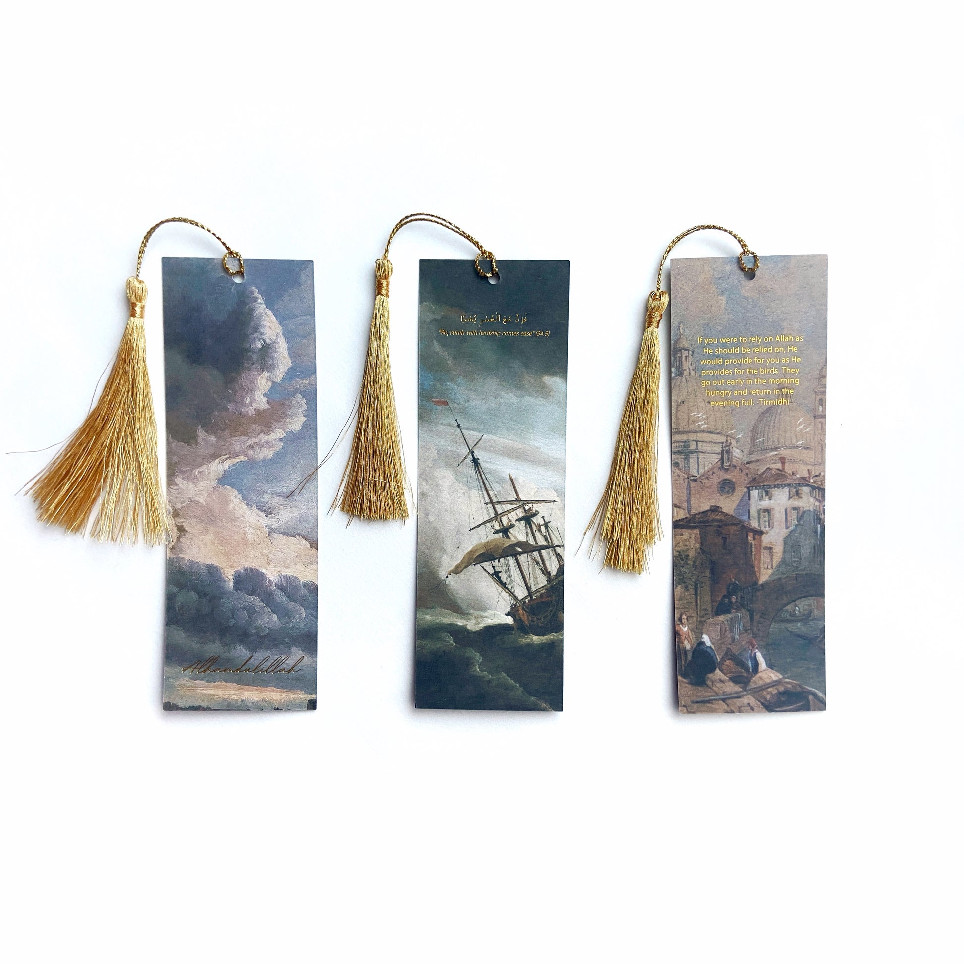 Elevate your reading experience with our beautiful bookmarks featuring carefully chosen art combined with Islamic quotes that truly uplift. A lovely set of 3 bookmarks embellished with golden tassels that adds the perfect touch. Ideal for gifting to fellow book enthusiasts!