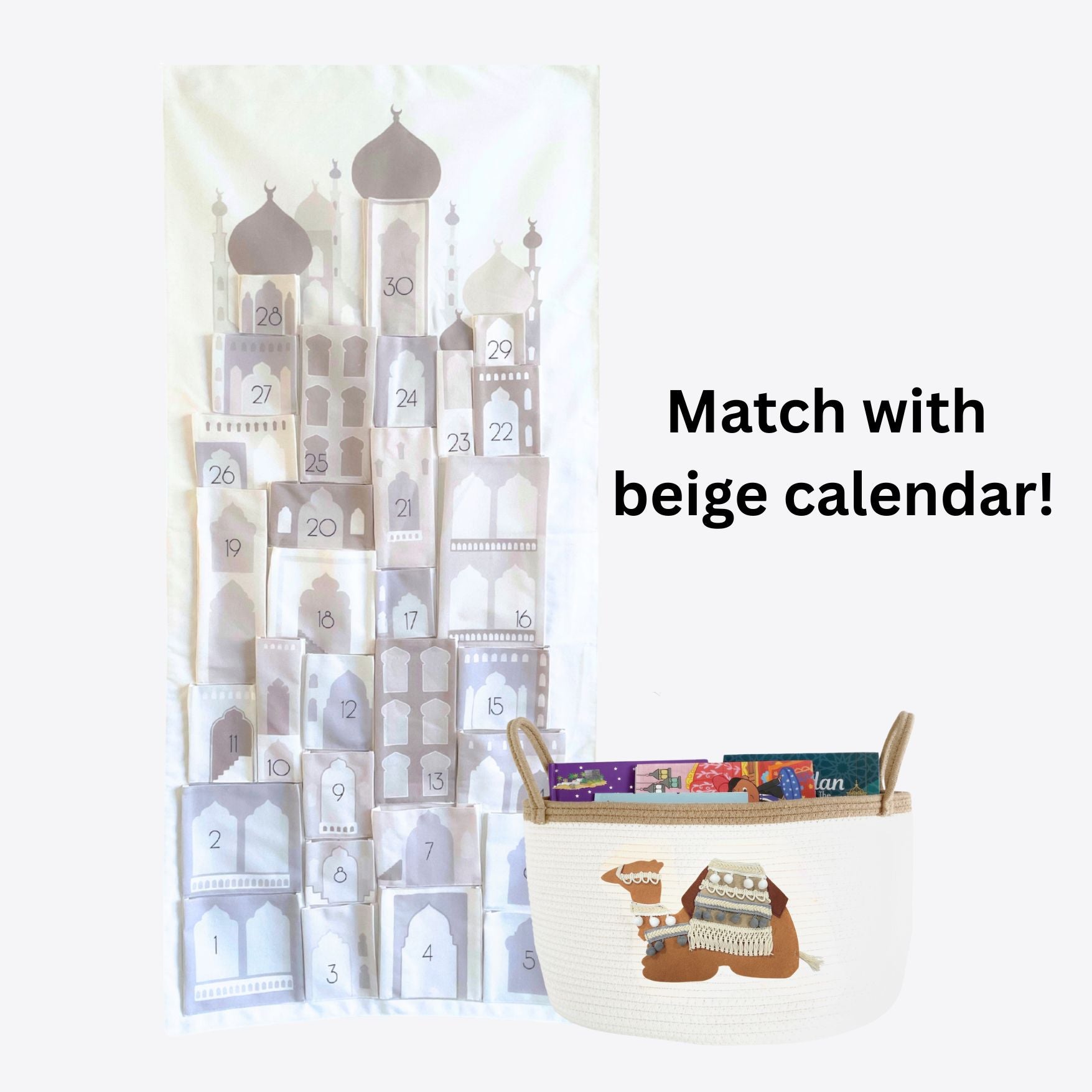 The perfect catch-all basket for your kid's Ramadan prayer corner. Practical and sturdy for Ramadan books, activities, prayer mats, prayer accessories, tasbeeh, gifts and much more.
