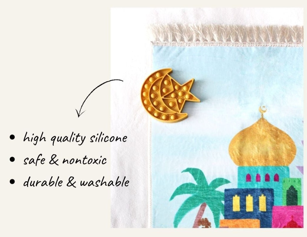 High quality food grade silicone and are so much fun! Everyone of all ages will love the satisfying slight pop sounds and the unique Islamic shape.