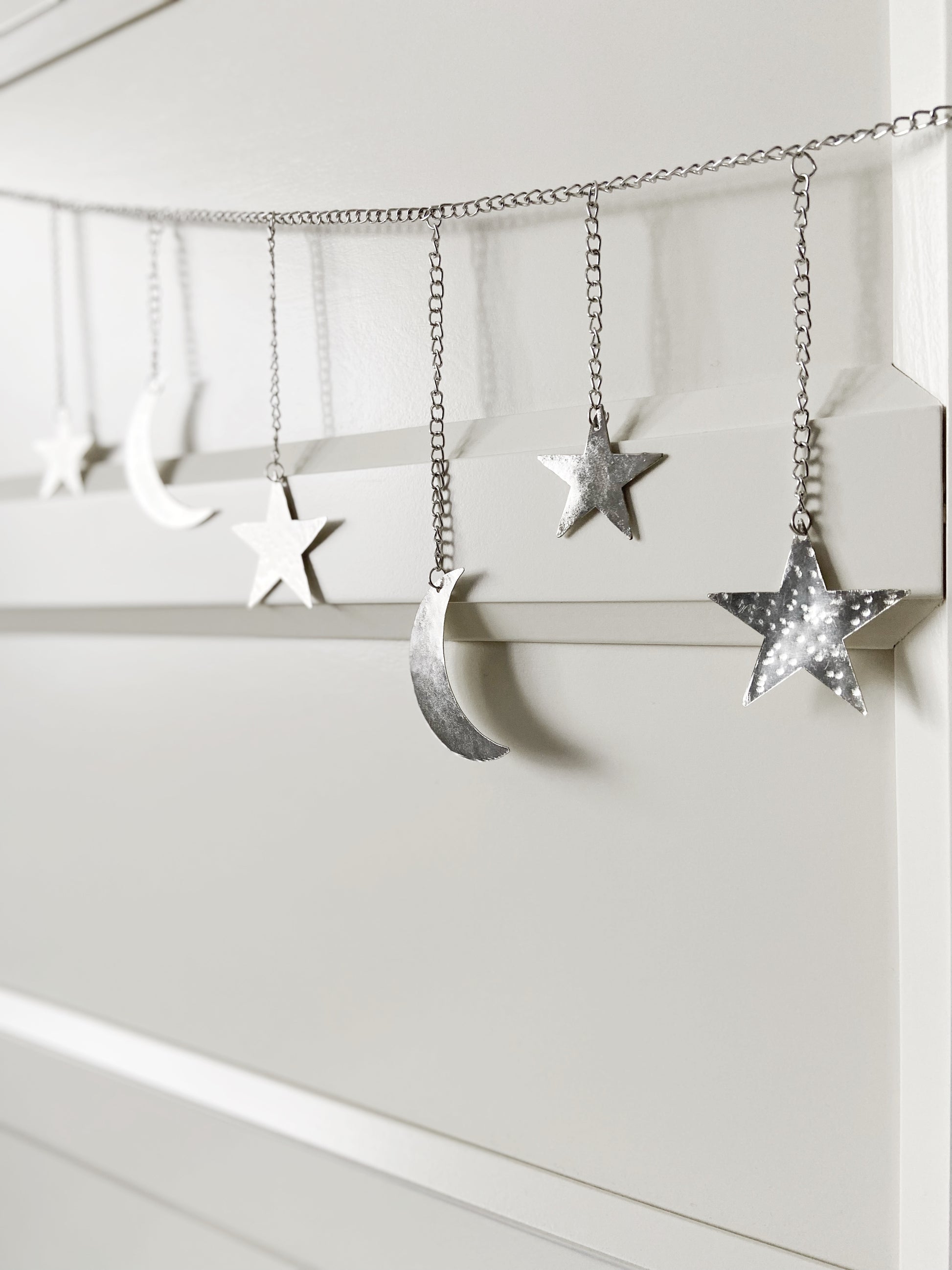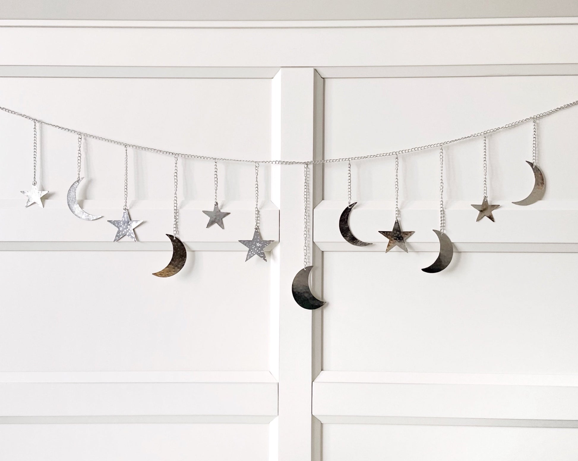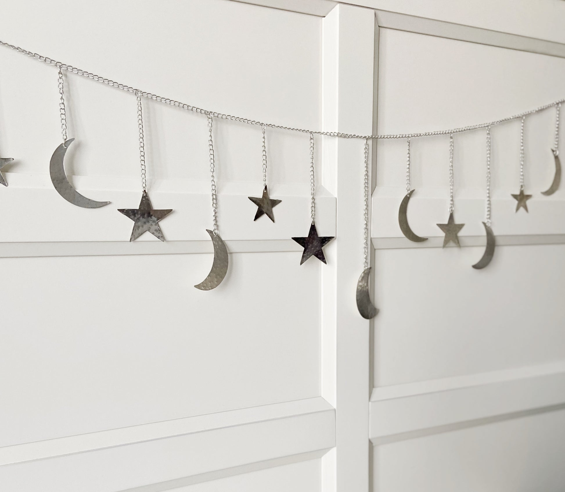 Silver Hammered Metal Moon & Star Garland